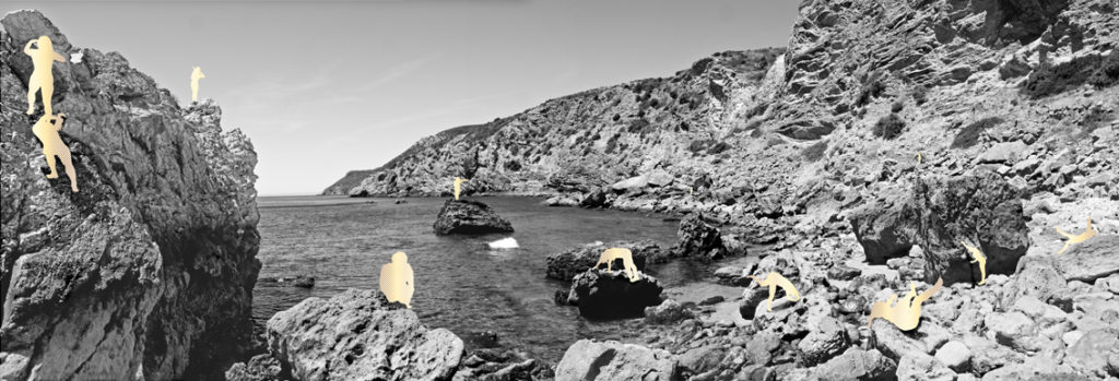 Untitled project is a work-in-progress photographic project dealing with the dichotomy foreground/background. The self-representation of the artist as a body or shape is cut off in order to reveal a digital gold background. The assemblage of bodies composes a grotesque narrative that demystifies the visual pleasure usually given by a female body representation.